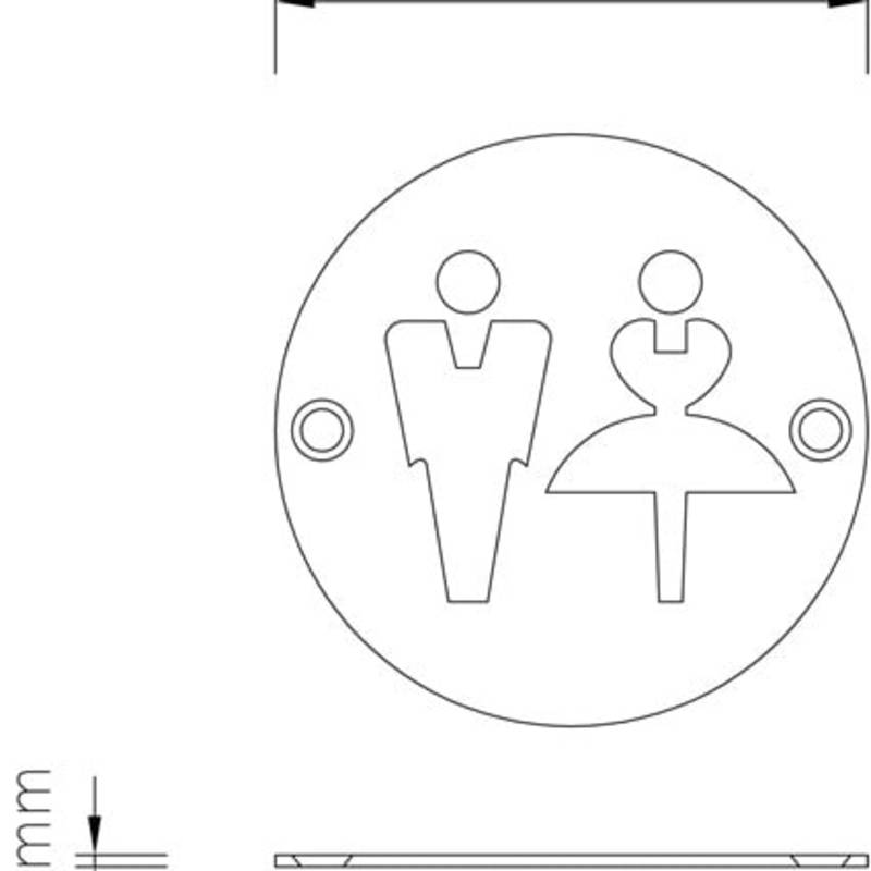 Het WC pictogram mannen & vrouwen RVS rond is een stijlvol en duurzaam toilet deur bordje dat functionaliteit combineert met een moderne uitstraling. Dit hoogwaardige pictogram maakt deel uit van onze eigen import RVS-beslaglijn, waarbij kwaliteit, design en gebruiksgemak centraal staan. Dankzij het tijdloze ronde ontwerp past dit RVS WC pictogram perfect in zowel moderne als klassieke interieurs. Het pictogram geeft duidelijk aan dat de toiletruimte geschikt is voor zowel mannen als vrouwen en zorgt voor een nette, professionele en herkenbare aanduiding op iedere deur. Het gebruik van hoogwaardig roestvrij staal (RVS) garandeert een lange levensduur, zelfs in vochtige sanitaire ruimtes zoals toiletten, badkamers en horecagelegenheden.