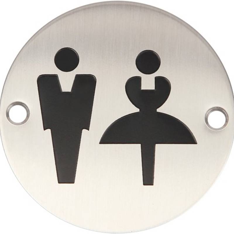 Unisex WC Pictogram RVS Rond | Toilet Aanduiding Mannen & Vrouwen