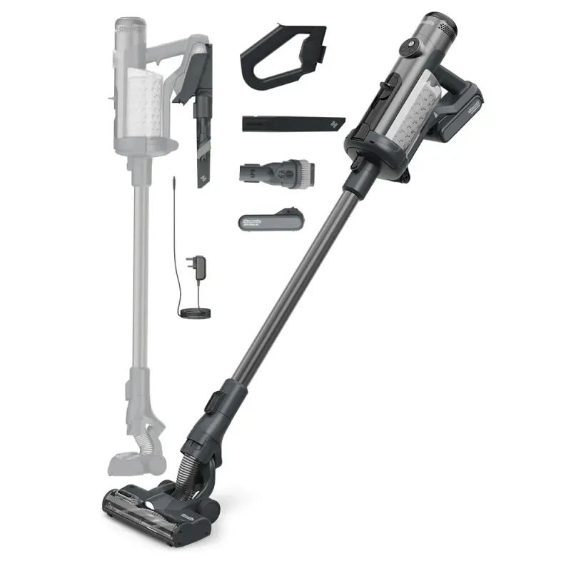 Numatic Quick NQ100 is een veelzijdige steelstofzuiger die zowel grote oppervlakken als lastige hoekjes efficiënt schoonmaakt. Dankzij de handzame steel en het lichte gewicht van 3,2 kg is het reinigen van trappen, smalle gangen en meubels eenvoudig. De snoerloze stofzuiger kan bovendien worden omgebouwd tot kruimeldief door de steel los te koppelen en de opzetstukken te gebruiken.