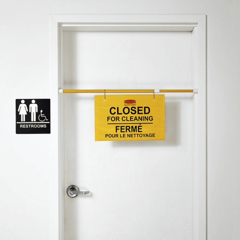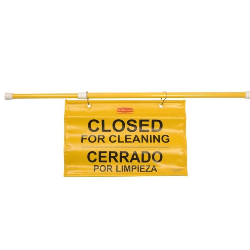 Rubbermaid uitschuifbare waarschuwingsvlag is ontworpen om tijdelijke werkruimtes duidelijk af te zetten tijdens schoonmaakwerkzaamheden. Het flexibele doek toont de meertalige tekst ‘Closed for Cleaning’ en voorkomt dat bezoekers of medewerkers een ruimte betreden. Dankzij het stevige klemsysteem kan de vlag eenvoudig en stabiel in deuropeningen worden geplaatst.